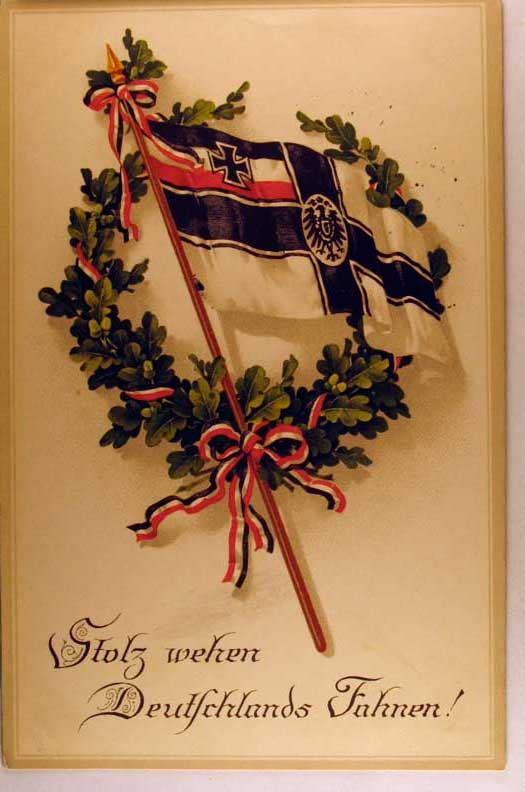 Lot #996. View Larger | Rotate W.W. I German Patriotic w/ Flag and New Year Greeting, 1914-15 Weltkrieg ser., used 1916 w/ Feldpost and Purple Markings VF