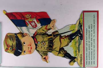Lot #1101. View Larger | Rotate W.W. I, U.S. Pub., Ser. of Die Cut “Barr’s Flag Boys” w/ Non P.C. back, “Serbia”, Very Nice VF