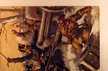 Lot #1145. View Larger | Rotate W.W. I German pub., Art. Sig. Henckel, Attacking Russian Troops, Great Card used 1915 w/ Feldpost and Purple Marking m cor wear F-VF
