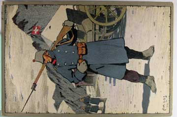 Lot #1137. View Larger | Rotate W.W. I, Swiss Pub., 1914 Feildpostkarte, Art. Sig., Used Zurick but Missing Stamp VF