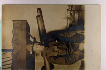Lot #1109. View Larger | Rotate W.W. I, U.S. Arcade Style Real Photo w/ AZO P.C. back, w/ Battleship Backdrop VF