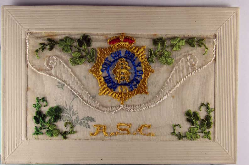 Lot #976. View Larger | Rotate W.W. I, French Pub., Novelty Embroidered Silk, “Army Service Corps.” DB VF