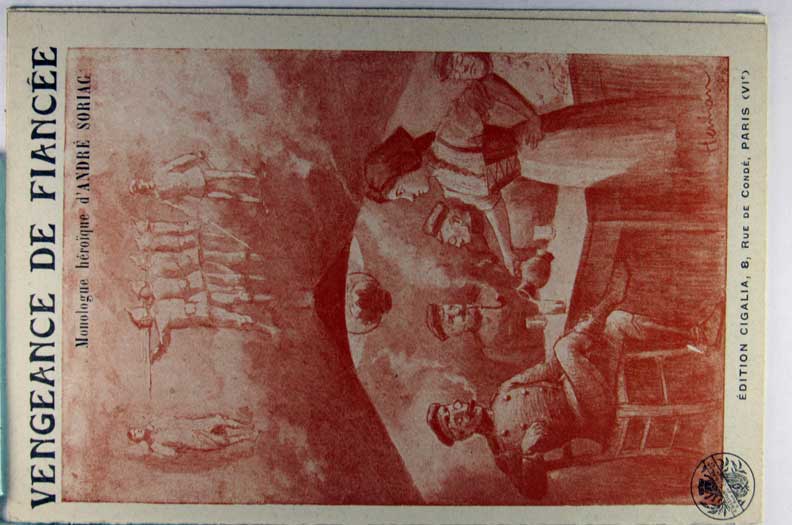 Lot #1129. View Larger | Rotate W.W. I, French Pub., Double Card Opens to Song Music , “Vengeance de Fiancee” DB Near VF