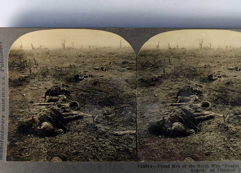 Lot #1094. View Larger | Rotate W.W. I, U.S. Pub., Real Photo Stereoview w/ non P.C. back, “Proud Men.. Fought on Flanders Field”, Incl. Dead Soldiers Near VF