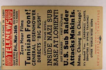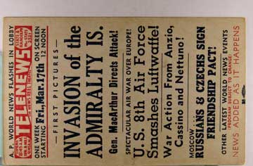 Lot #1021. View Larger | Rotate W.W. II, U.S. Pub., War News Reel Chicago, Theater Adv., “Telenews”, Fri., Mar. 26th VF