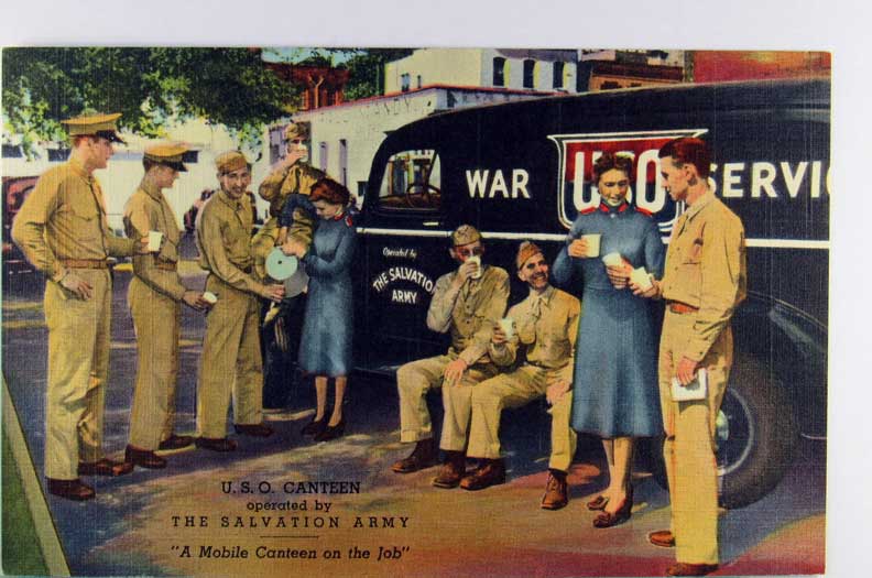 Lot #1005. View Larger | Rotate W.W. II, U.S. Pub., Curt Teich Pub., USO Canteen w/ Salvation Army L VF