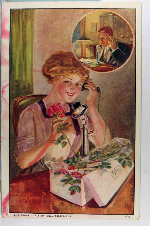 Card # 169133. View Larger | Rotate Adv. Bell Telephone ser., # R-6, “Social Call” DB edge flts F
