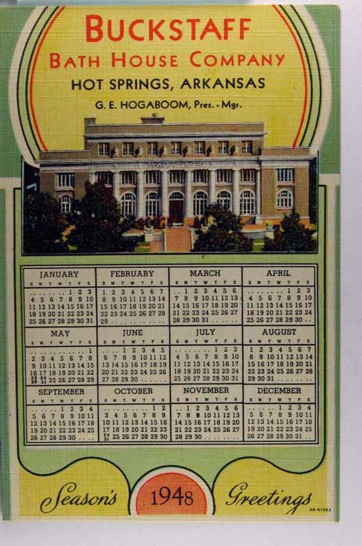 Card # 179829. View Larger | Rotate Adv. Buckstaff Bath House Co., Hot Springs, Arkansas, w/1948 Year Date L VF