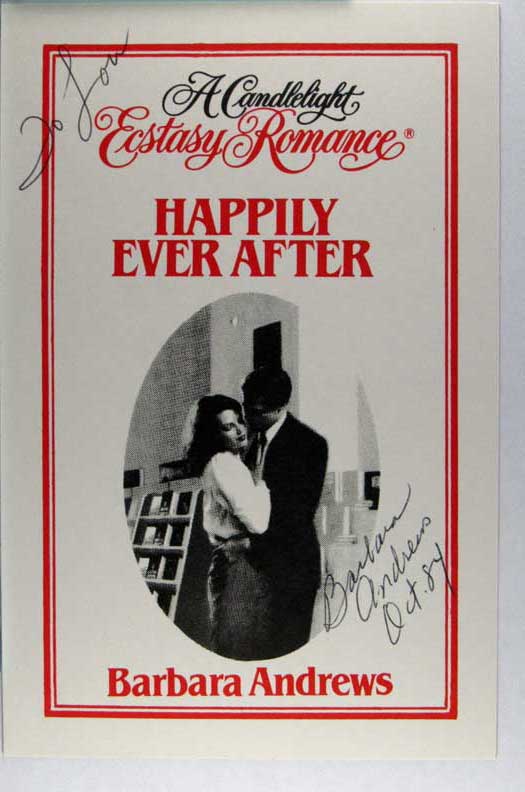 Card # 193369. View Larger | Rotate Adv. Romance Novel “Happily Ever After” by Barbara Andrews w/ Autograph VF