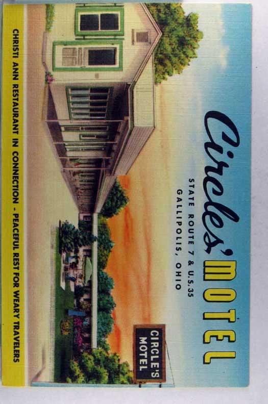 Card # 173333. View Larger | Rotate Adv. Circles Motel, Gallipolis, Ohio L VF