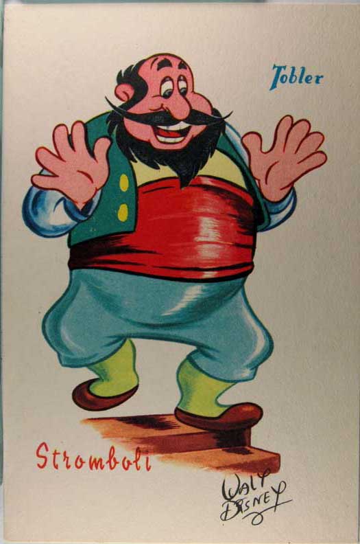 Card # 164514. View Larger | Rotate Adv. Tobler Chocolate, Art. Sig. Walt Disney, Stromboli from Pinocchio VF