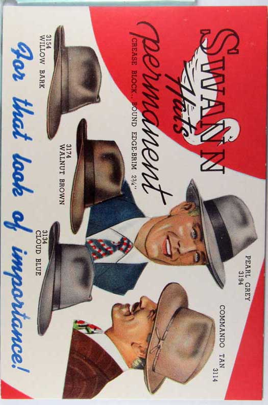 Card # 144491. View Larger | Rotate Adv. Swann Hats, Non P.C. Blotter from Curt Teich Collection VF