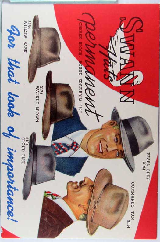 Card # 144494. View Larger | Rotate Adv. Swann Hats, Non P.C. Blotter from Curt Teich Collection VF
