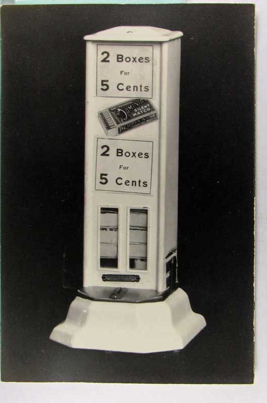 Card # 197299. View Larger | Rotate Adv. Matchbox Vending Machine, Real Photo w/ AZO P.C. back VF