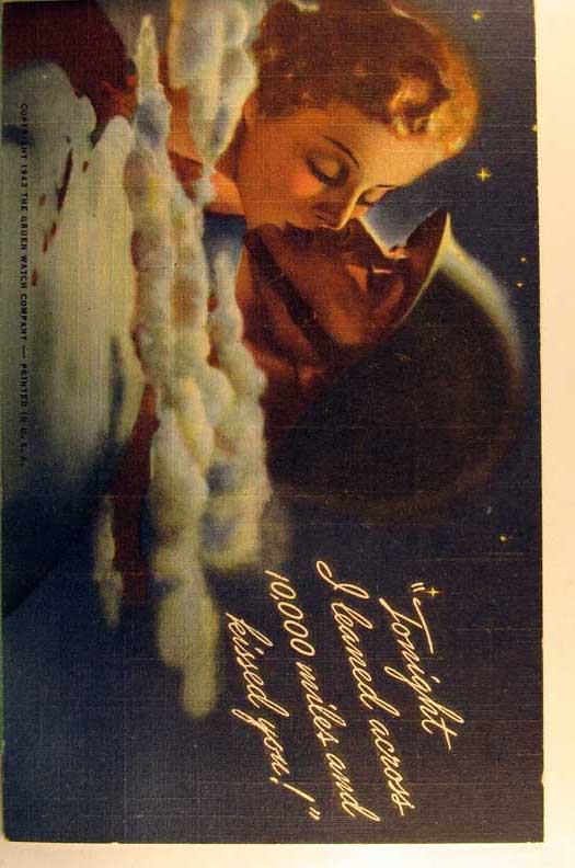 Card # 88998. View Larger | Rotate W.W. II era Linen Adv. Gruen Watch Co. cpr. 1943, very nice VF