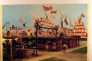 Card # 70729. View Larger | Rotate Adv. Old South Bar-B-Q Ranch, Clewiston, Florida, inc. Confederate Flags, Curt Teich Pub. Pre Zip Code C VF