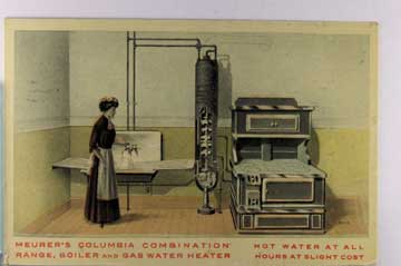 Card # 179819. View Larger | Rotate Adv. Meurer’s Columbia Combination Range, Boiler and Gas Water Heater, Portland, Oregon, Used Same 1913 m cor wear & m cor crs F-VF