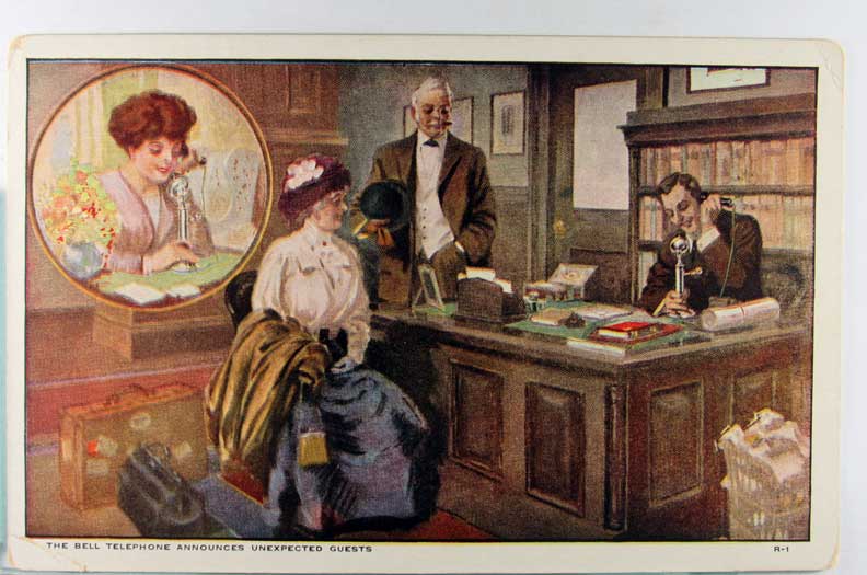 Card # 169127. View Larger | Rotate Adv. Bell Telephone ser., # R-1, “Unexpected Guests” DB cor cr F-VF