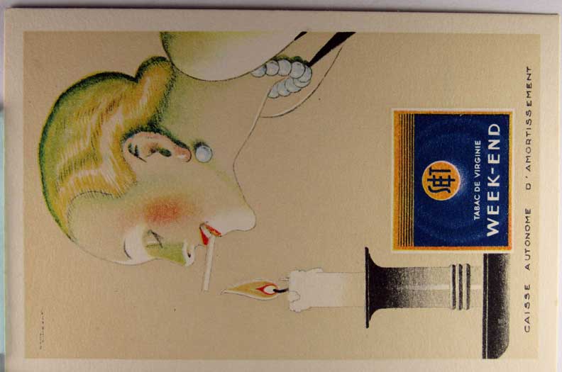 Card # 149935. View Larger | Rotate Poster Card Adv. Week-End Cigarettes, Art. Sig. Rene Vincent VF