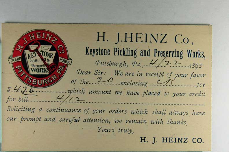 Card # 150220. View Larger | Rotate Adv. Heinz, Multi-Color on U.S. Gov’t. Postal, Used 1892 p wof VF