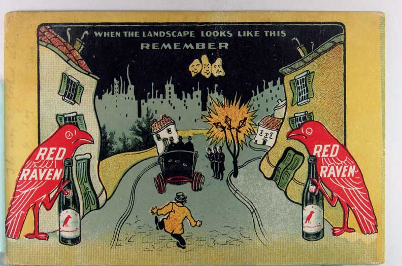 Card # 197361. View Larger | Rotate Adv. Red Raven, The Duquesne Distributing Co., Dizzy Landscape, used 1907 UB cor wear & m wof Near F-VF