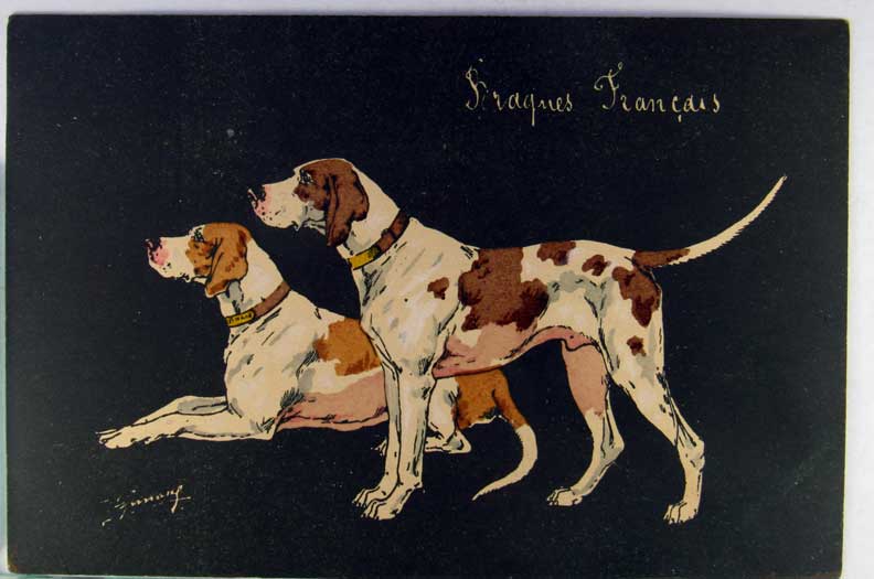 Card # 165316. View Larger | Rotate Dogs, French Pub. Art Card, Art. Sig. UB very m cor album marks Near VF