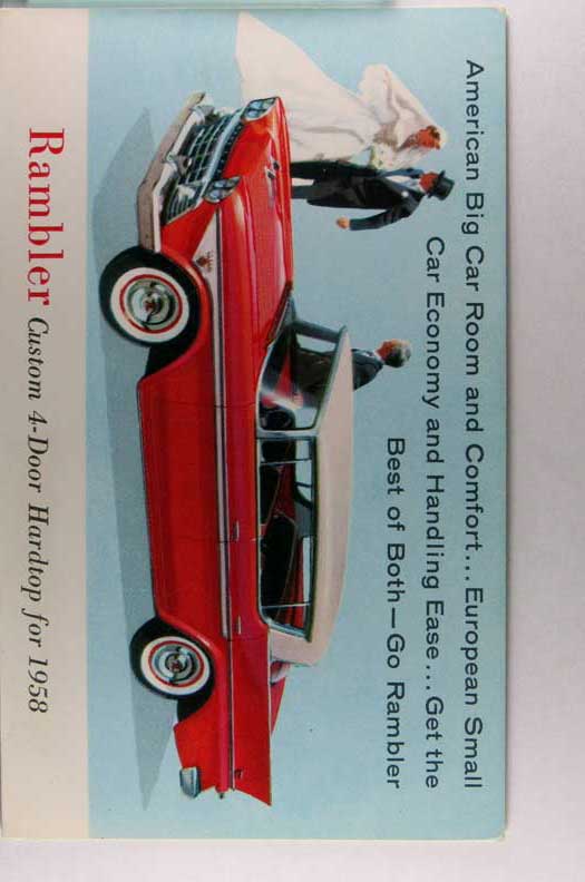 Card # 196328. View Larger | Rotate Adv. 1958 Rambler 4-Door Sedan Pre Zip-Code C m cor wear VF