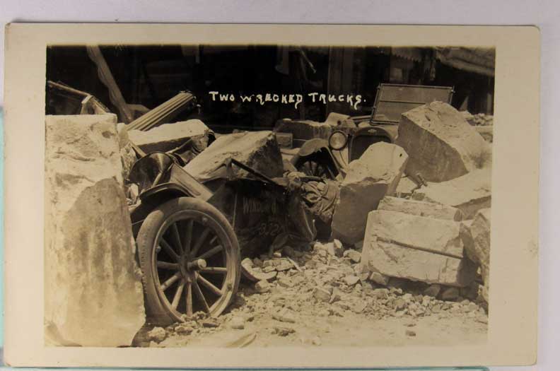 Card # 182272. View Larger | Rotate Auto Wreck, Real Photo w/ AZO P.C. back, After Earthquake? VF