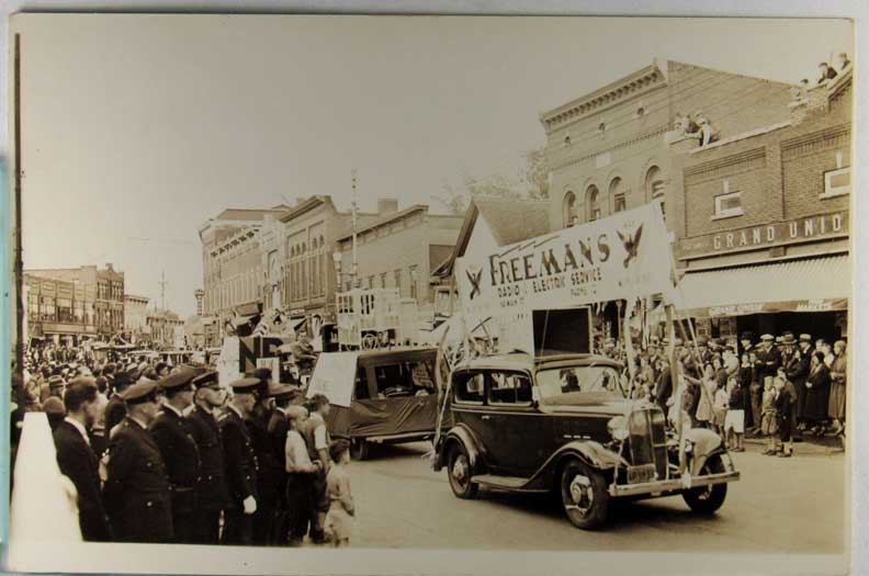 Card # 175200. View Larger | Rotate Auto Parade, Adv. Freemans Electric Service, Real Photo w/ AZO P.C. back Near VF