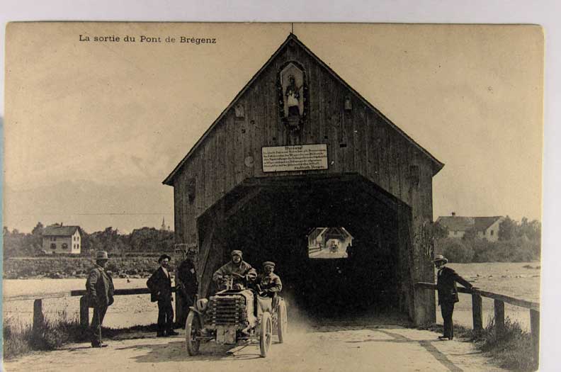 Card # 144784. View Larger | Rotate French Auto Racing, “La Sortie du Pont de Bregenz”, Photogravure UB VF