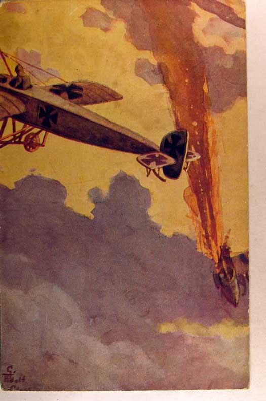 Card # 70922. View Larger | Rotate W.W. I, German Pub., Art. Sig., “Fliegerkampf mit Ubfturz” DB m cor wear Near VF