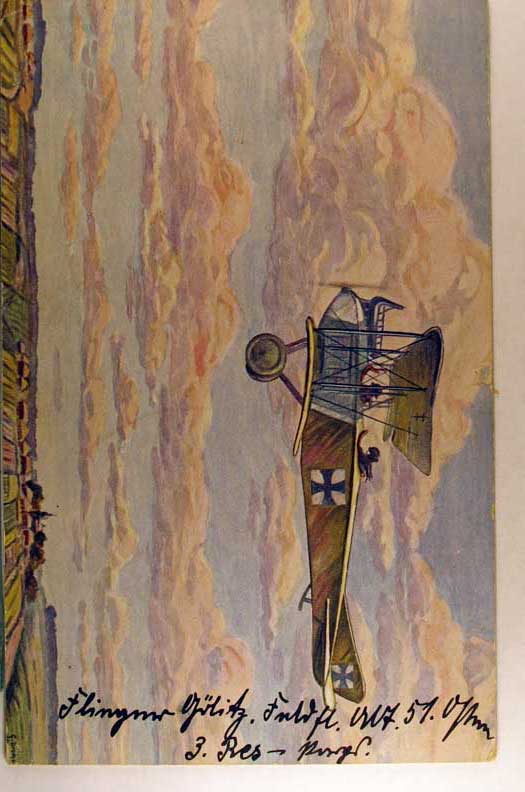 Card # 69109. View Larger | Rotate W.W. I German pub. w/ Biplane Over Battle Scene, B&W, used DB F-VF