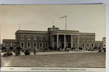 Card # 112467. View Larger | Rotate St. Louis Lambert Field Real Photo w/ AZO P.C. back, Admin. Bld. VF