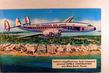 Card # 48045. View Larger | Rotate Adv. Eastern Airlines, Super-C Constellation Over Miami Beach C pinhole VF