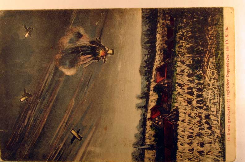 Card # 53226. View Larger | Rotate W.W. I German pub., Downed English Bi - Plane, In Brand, am 10.8.16 some creases F