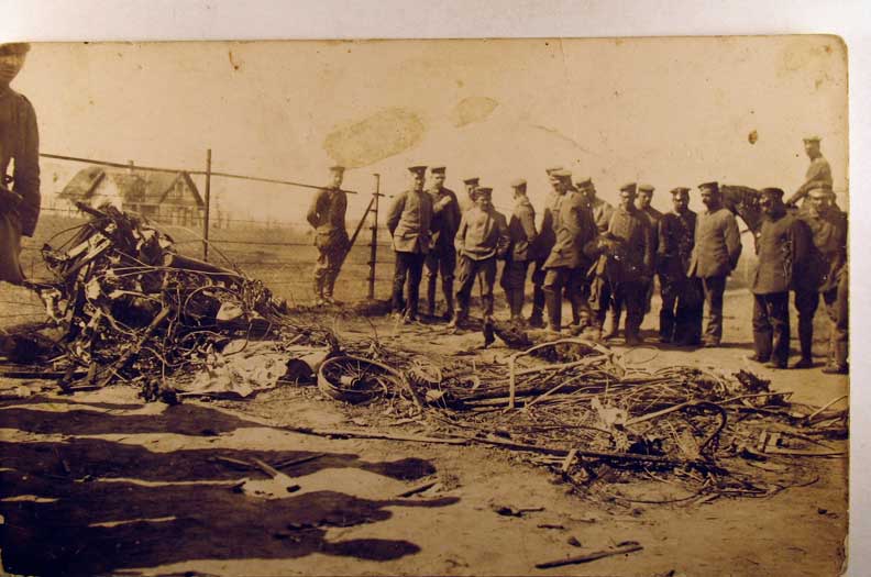 Card # 66868. View Larger | Rotate W.W. I German printed photogravure, Crashed Plane and Dead Flyer, used 1917 w/ Feldpost and Purple Marking VF