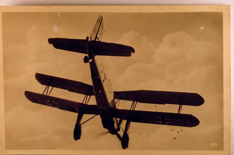 Card # 40817. View Larger | Rotate Post W.W. I British pub., printed in Germany, Biplane, Attractive Card VF