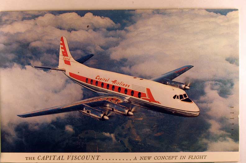 Card # 48051. View Larger | Rotate Adv. Capital Airlines, Viscount, Used 1955 w/ 4¢ Airmail Issue C VF