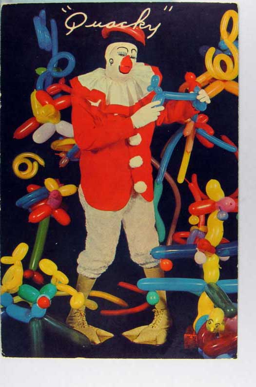 Card # 192973. View Larger | Rotate Adv. Quacky Duck the Magical Balloon King Clown, Curt Teich Pub. C m wear Near VF