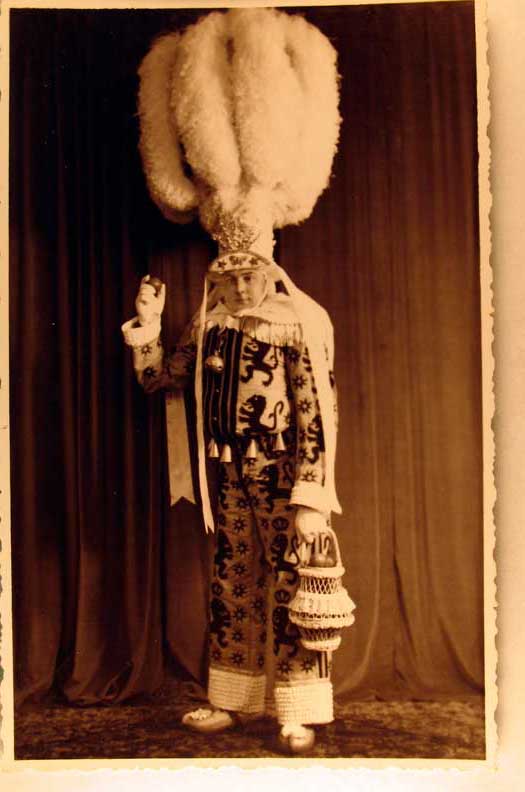Card # 347. View Larger | Rotate Unusual B&W photo, Woman in Carnival Costume with Juggling Balls ?, “Gilles, Les Sans Rancune, de Houdeng Goegnies” VF