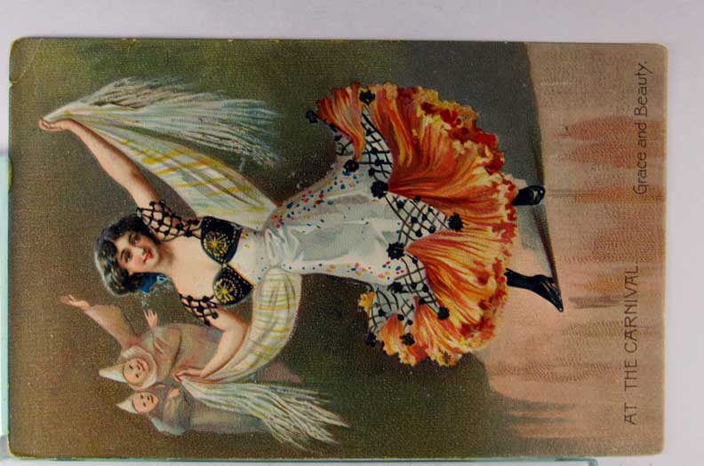 Card # 182574. View Larger | Rotate At the Carnival, R. Tuck Pub., Ser. #117, “Grace and Beauty”, Used 1908 DB emb m cor cr & m cor wear F-VF