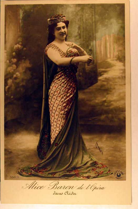 Card # 33716. View Larger | Rotate Alice Baron de L’Opera as Aida, French Tinted photo by Manual, Croissant ser. # 3603, very nice DB VF