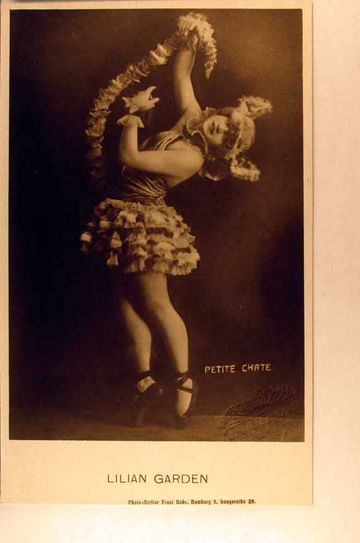 Card # 33728. View Larger | Rotate Lilian Garden, Dancer, German B&W photo, “Petit Chate” DB VF