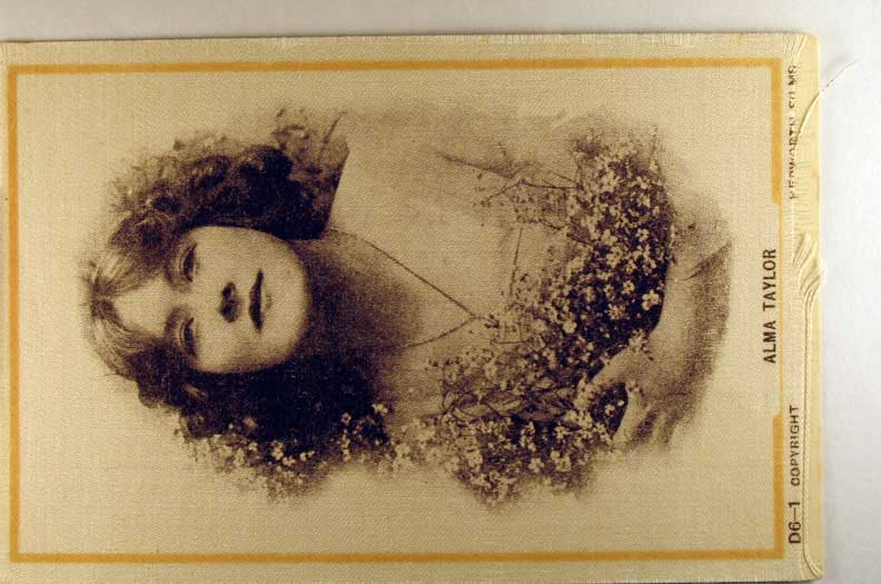 Card # 10993. View Larger | Rotate Printed on Silk Ser., #D6-1, “Alma Taylor” VF