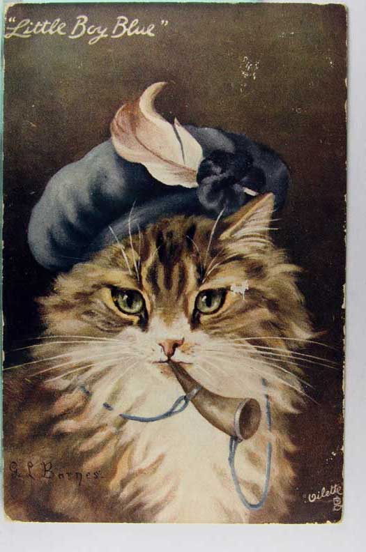 Card # 159457. View Larger | Rotate Fantasy Cat, Art. Sig. G. L. Barnes, R Tuck Pub., #9301, “Little Boy Blue” DB cor wear & m edge wear F-VF