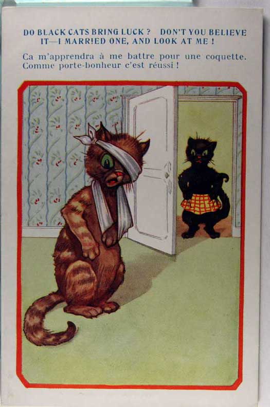 Card # 190518. View Larger | Rotate Fantasy Cats, Art by Boulanger, R. Tuck Pub., Used DB m cor cr & wear Near F-VF