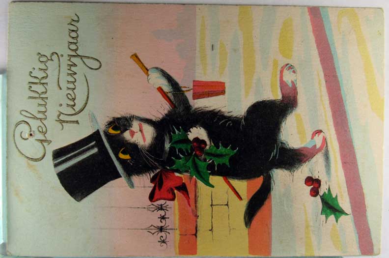 Card # 154200. View Larger | Rotate Fantasy Cat, New Year, #1035, Used 1926 pinhole F-VF