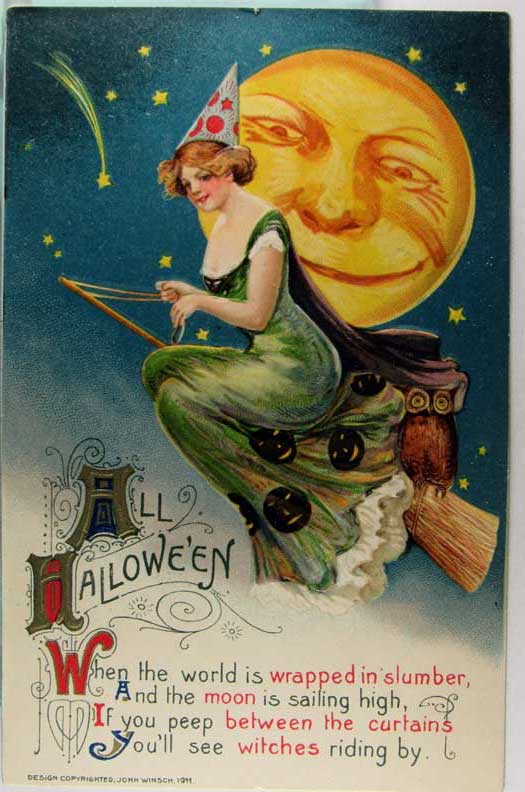 Card # 187255. View Larger | Rotate Halloween, Winsch Pub., Used 1925 DB emb m cof VF