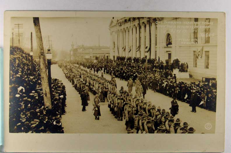 Card # 176667. View Larger | Rotate U.S. Military, Real Photo w/AZO P.C. back, Troops Returning From Mexican Border War, Delaware m edge crs & m cor wear F-VF