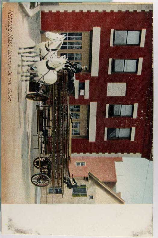 Card # 171450. View Larger | Rotate Horse-Drawn Fire Wagon, Fitchburg, Massachusetts, Tinted Printed Photo UB m flts Near F-VF